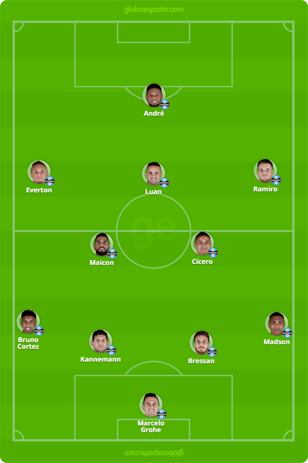 O Grêmio entra em campo disposto a chancelar o "maio azul" com um triunfo para manter intacta sua invencibilidade no mês. Até o momento, a equipe disputou oito jogos por três competições diferentes – Brasileirão, Copa do Brasil e Libertadores – e somou seis vitórias e dois empates, com 83% de aproveitamento. Em sua "cruzada" para furar retrancas adversárias, Renato ganha o reforço de Luan para se somar a Everton no ataque. O técnico ainda espera Arthur e não contará com Pedro Geromel e Léo Moura para formar sua equipe "ideal.